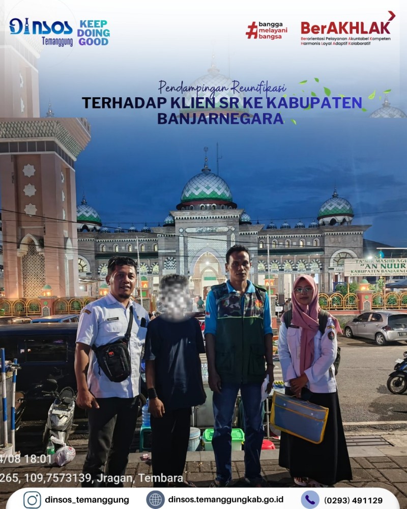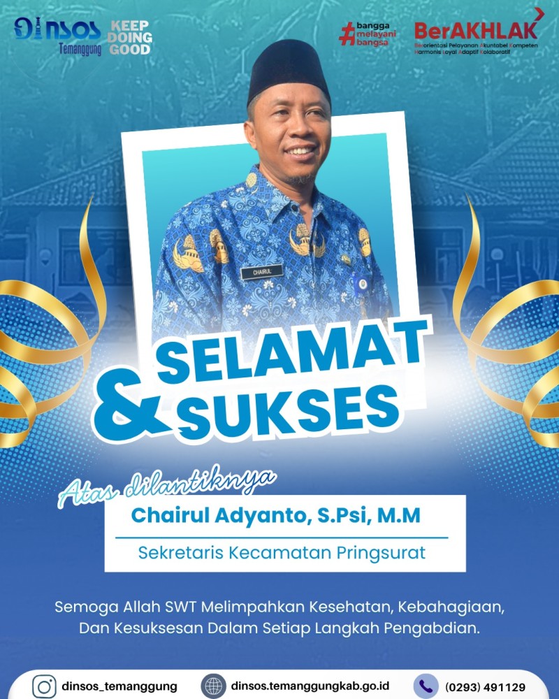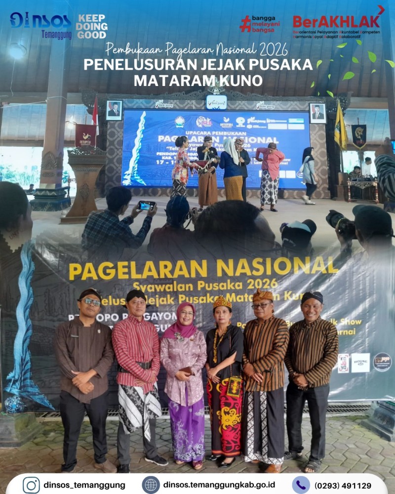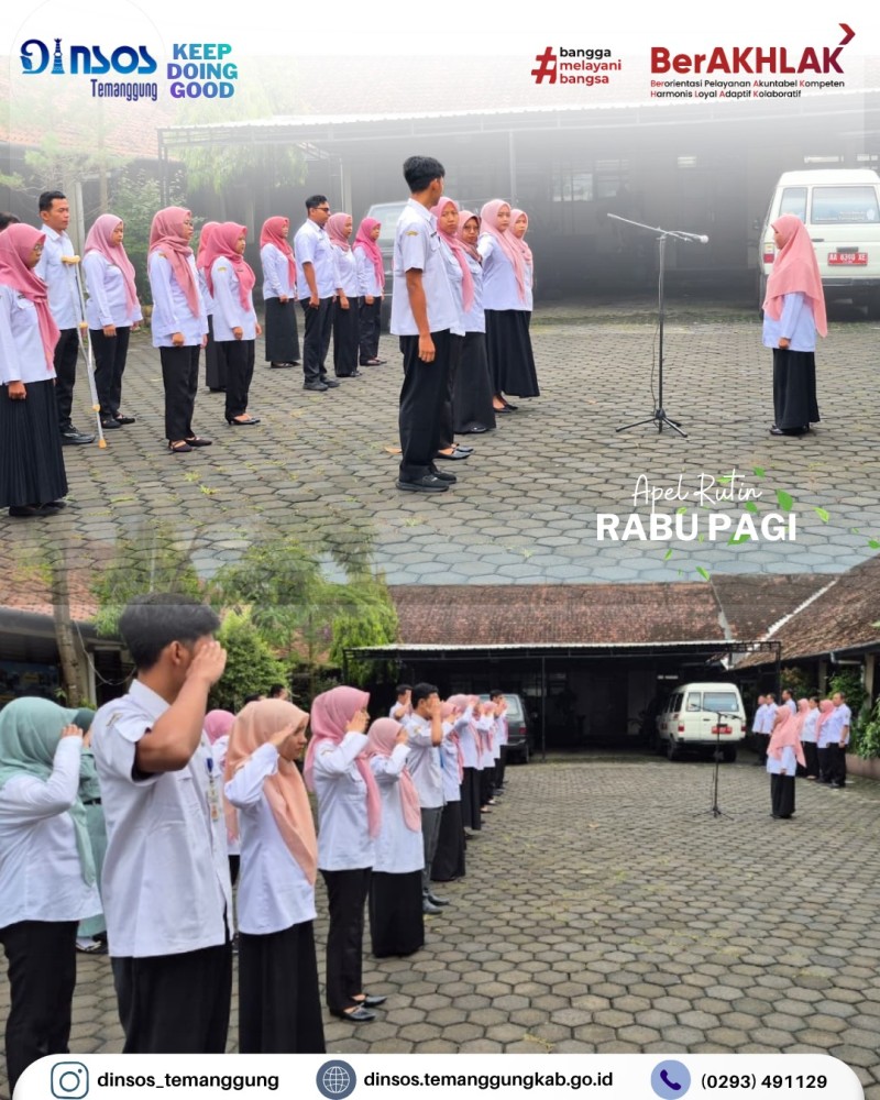 Berita Kategori: Smart Government (Pemerintah Cerdas) Sekretariat Jumat, 17/04/2026 14:25 1 Kepala Dinas Sosial mengikuti rapat lewat zoom meeting Evaluasi ground check PBI tahap II Selengkapnya Kategori: Smart Government (Pemerintah Cerdas) Sekretariat Jumat, 17/04/2026 14:18 1 Dinas Sosial mengucapkan Selamat dan sukses atas dilantiknya Bapak Chairul Adyanto, S.Psi, M.M sebagai Sekretaris Kecamatan Pringsurat Selengkapnya Kategori: Smart Government (Pemerintah Cerdas) Sekretariat Jumat, 17/04/2026 14:15 1 Dinas Sosial mengikuti pembukaan Pagelaran Nasional, syawalan pusaka 2026 Selengkapnya Kategori: Smart Government (Pemerintah Cerdas) Sekretariat Jumat, 17/04/2026 14:08 0 Dinas Sosial mengucapkan terima kasih dan melepas peserta magang siswi SMKN 5 Kendal Selengkapnya Kategori: Smart Government (Pemerintah Cerdas) Sekretariat Kamis, 16/04/2026 15:13 0 Dinas Sosial mengadakan rapat koordinasi terkait bankeu, hibah dan bansos Selengkapnya Kategori: Smart Government (Pemerintah Cerdas) Sekretariat Kamis, 16/04/2026 14:51 2 Dinas Sosial mengikuti desk dan review dokumen evaluasi penyelenggaraan Kabupaten Layak Anak Selengkapnya Kategori: Smart Government (Pemerintah Cerdas) Bidang Perlindungan dan Jaminan Sosial Kamis, 16/04/2026 08:42 0 Dinas Sosial mengikuti Kegiatan Peningkatan Kapasitas pengelola SIKS-NG Daerah Tahun 2026 Selengkapnya Kategori: Smart Government (Pemerintah Cerdas) UPT Kamis, 16/04/2026 08:32 0 Dinas Sosial melakukan pendampingan reunifikasi klien SR ke Kabupaten Banjarnegara Selengkapnya Kategori: Smart Government (Pemerintah Cerdas) Bidang Perlindungan dan Jaminan Sosial Rabu, 15/04/2026 14:36 0 Dinas Sosial melaksanakan monitoring penyaluran bantuan pangan Selengkapnya Kategori: Smart Government (Pemerintah Cerdas) Sekretariat Rabu, 15/04/2026 13:21 0 Dinas Sosial memenuhi undangan dari Camat Temanggung dalam acara rapat koordinasi dan evaluasi bidang kesehatan Selengkapnya Kategori: Smart Government (Pemerintah Cerdas) Sekretariat Rabu, 15/04/2026 10:39 0 Dinas Sosial melakukan layanan SLRT Selengkapnya Kategori: Smart Government (Pemerintah Cerdas) Sekretariat Rabu, 15/04/2026 10:28 0 Apel pagi Dinas Sosial Selengkapnya 123NextLast