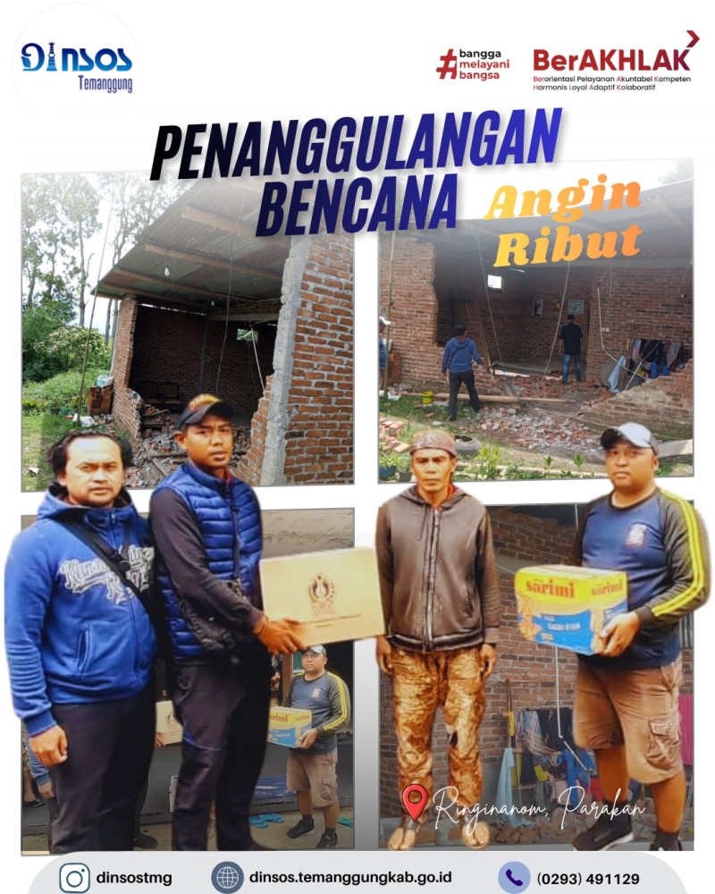 Berita Kategori: Smart Government (Pemerintah Cerdas) Sekretariat Selasa, 27/01/2026 08:45 3 Apel pagi Dinas Sosial Hari Selasa tanggal 27 Januari 2026 Selengkapnya Kategori: Smart Government (Pemerintah Cerdas) Sekretariat Selasa, 27/01/2026 08:00 3 Pembinaan dan Evaluasi Kinerja Satpam Dinsos Tahun 2025 Selengkapnya Kategori: Smart Government (Pemerintah Cerdas) Sekretariat Senin, 26/01/2026 15:07 2 Dinas Sosial mengikuti Rapat Koordinasi (Rakor) Pembangunan dan Penerapan Manajemen Talenta Pemerintah Kabupaten Temanggung Selengkapnya Kategori: Smart Government (Pemerintah Cerdas) Sekretariat Senin, 26/01/2026 14:24 2 TKSK Kecamatan Wonoboyo mengikuti Musrenbang RKPD Kabupaten Temanggung di Kecamatan Wonoboyo Tahun 2027 Selengkapnya Kategori: Smart Government (Pemerintah Cerdas) Sekretariat Senin, 26/01/2026 14:23 0 TKSK Kecamatan Kandangan melaksanakan monev bansos sembako Selengkapnya Kategori: Smart Government (Pemerintah Cerdas) Bidang Perlindungan dan Jaminan Sosial Senin, 26/01/2026 10:38 1 Dinas Sosial Kabupaten Temanggung bersama Taruna Siaga Bencana (TAGANA) Temanggung melakukan kegiatan penanggulangan bencana tanah longsor Selengkapnya Kategori: Smart Government (Pemerintah Cerdas) Sekretariat Senin, 26/01/2026 10:10 0 TKSK Kecamatan Tlogomulyo melakukan monitoring bencana angin kencang di Desa Candisari dan Desa Sriwungu Selengkapnya Kategori: Smart Government (Pemerintah Cerdas) Sekretariat Senin, 26/01/2026 09:45 2 TKSK KECAMATAN KALORAN MELAKUKAN PENDAMPINGAN KORBAN BENCANA Selengkapnya Kategori: Smart Government (Pemerintah Cerdas) Sekretariat Senin, 26/01/2026 09:37 2 Dinas Sosial membuka pelayanan di Mall Pelayanan Publik Kabupaten Temanggung Selengkapnya Kategori: Smart Government (Pemerintah Cerdas) Bidang Perlindungan dan Jaminan Sosial Senin, 26/01/2026 08:11 2 Dinas Sosial Kabupaten Temanggung bersama Taruna Siaga Bencana (TAGANA) Temanggung melakukan kegiatan penanggulangan bencana angin ribut Selengkapnya Kategori: Smart Government (Pemerintah Cerdas) Bidang Perlindungan dan Jaminan Sosial Senin, 26/01/2026 08:01 1 Dinas Sosial Kabupaten Temanggung bersama Taruna Siaga Bencana (TAGANA) Temanggung melakukan kegiatan penanggulangan bencana angin ribut Selengkapnya Kategori: Smart Government (Pemerintah Cerdas) Bidang Perlindungan dan Jaminan Sosial Sabtu, 24/01/2026 14:39 2 Penanggulangan Bencana Angin Ribut yang Terjadi di Desa Campurejo Kecamatan Tretep Selengkapnya FirstPrev89101112NextLast