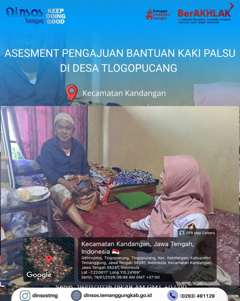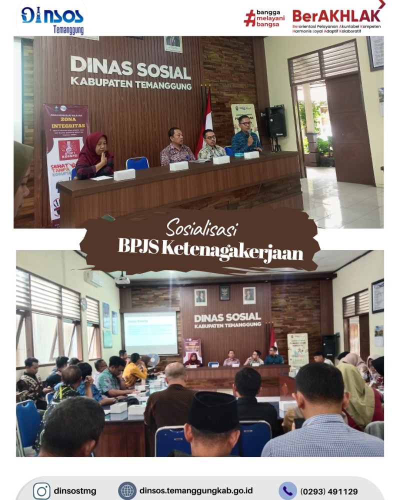 Berita Kategori: Smart Government (Pemerintah Cerdas) Sekretariat Selasa, 20/01/2026 13:01 1 TKSK Kecamatan Wonoboyo mengikuti kegiatan Zoom Meeting dengan BKSDM Kabupaten Temanggung Selengkapnya Kategori: Smart Government (Pemerintah Cerdas) Sekretariat Selasa, 20/01/2026 08:34 2 DINAS SOSIAL MELAKSANAKAN APEL PAGI 20 JANUARI 2026 Selengkapnya Kategori: Smart Government (Pemerintah Cerdas) Sekretariat Senin, 19/01/2026 15:47 1 TKSK Kecamatan Kandangan melakukan asesmen di Desa Tlogopucang pengajuan bansos JPS Selengkapnya Kategori: Smart Government (Pemerintah Cerdas) Sekretariat Senin, 19/01/2026 14:30 0 TKSK Kecamatan Kandangan melakukan asesmen pengajuan bantuan kaki palsu di Desa Tlogopucang Selengkapnya Kategori: Smart Government (Pemerintah Cerdas) Bidang Perlindungan dan Jaminan Sosial Senin, 19/01/2026 13:28 0 Dinas Sosial melakukan monitoring penerima klaim manfaat dari penerima bantuan iuran jaminan sosial ketenagakerjaan program JKM Selengkapnya Kategori: Smart Government (Pemerintah Cerdas) Sekretariat Senin, 19/01/2026 08:35 3 DINAS SOSIAL MELAKSANAKAN APEL PAGI Selengkapnya Kategori: Smart Government (Pemerintah Cerdas) Bidang Pemberdayaan Sosial Kamis, 15/01/2026 15:34 1 Dinas Sosial melakukan monitoring bantuan hibah sarpras bagi Lembaga Kesejahteraan Sosial (LKS) Gerak Generasi Harapan Selengkapnya Kategori: Smart Government (Pemerintah Cerdas) Bidang Perlindungan dan Jaminan Sosial Kamis, 15/01/2026 15:05 1 Dinas Sosial menyelenggarakan Sosialisasi BPJS Ketenagakerjaan dari BPJS Ketenagakerjaan Temanggung Selengkapnya Kategori: Smart Government (Pemerintah Cerdas) Bidang Perlindungan dan Jaminan Sosial Kamis, 15/01/2026 08:56 5 Dinas Sosial Kabupaten Temanggung bersama Taruna Siaga Bencana (TAGANA) Temanggung melakukan kegiatan penanggulangan bencana kebakaran yang terjadi di Desa Tempelsari Kecamatan Tretep Selengkapnya Kategori: Smart Government (Pemerintah Cerdas) Sekretariat Rabu, 14/01/2026 10:01 7 DINAS SOSIAL MELAKSANAKAN APEL PAGI BERSAMA Selengkapnya Kategori: Smart Government (Pemerintah Cerdas) Sekretariat Rabu, 14/01/2026 09:00 3 Rapat Inovasi Daerah Selengkapnya Kategori: Smart Government (Pemerintah Cerdas) Sekretariat Rabu, 14/01/2026 08:17 7 DINAS SOSIAL MENGADAKAN DIALOG KINERJA 2026 Selengkapnya FirstPrev1112131415NextLast