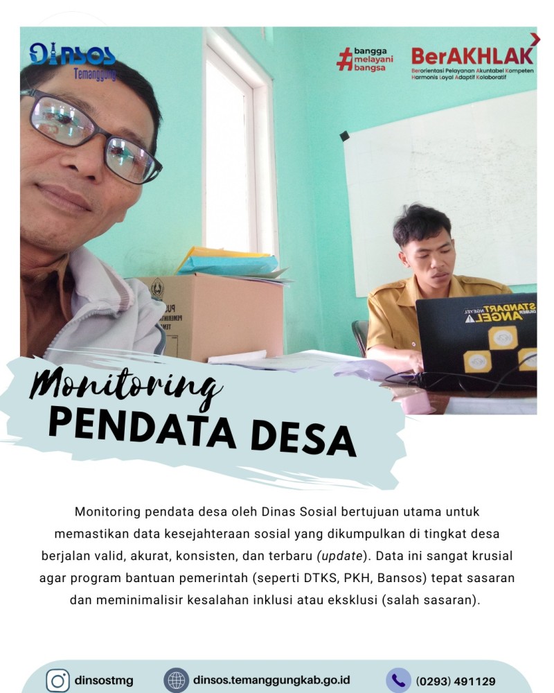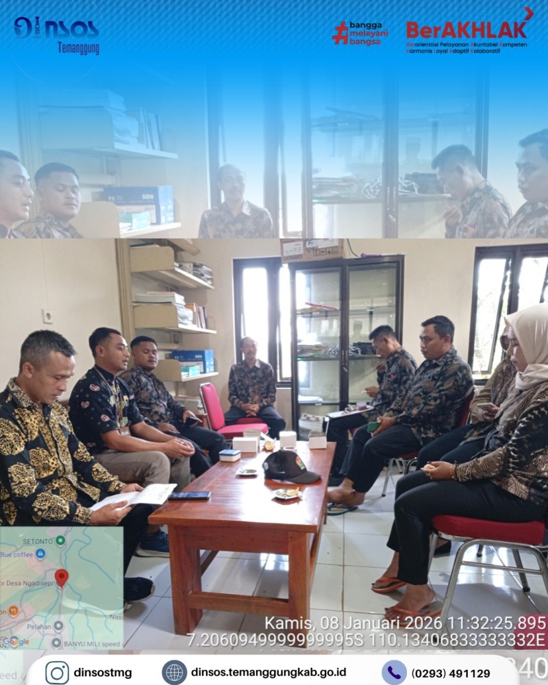 Berita Kategori: Smart Government (Pemerintah Cerdas) Sekretariat Selasa, 13/01/2026 15:47 1 Petugas sosial Kecamatan Kandangan sedang melaksanakan asesment pengajuan bansos JPS Selengkapnya Kategori: Smart Government (Pemerintah Cerdas) Sekretariat Selasa, 13/01/2026 15:41 1 TKSK Kecamatan Selopampang melakukan pendampingan assement terkait pengajuan bantuan modal usaha Selengkapnya Kategori: Smart Government (Pemerintah Cerdas) Sekretariat Senin, 12/01/2026 14:50 1 TKSK Kecamatan Tlogomulyo melaksanakan monitoring pendata desa Selengkapnya Kategori: Smart Government (Pemerintah Cerdas) Sekretariat Senin, 12/01/2026 09:52 5 DINAS SOSIAL MENGADAKAN APEL PAGI Selengkapnya Kategori: Smart Government (Pemerintah Cerdas) Sekretariat Jumat, 09/01/2026 11:14 14 SENAM BERSAMA DI DINAS SOSIAL Selengkapnya Kategori: Smart Government (Pemerintah Cerdas) Sekretariat Kamis, 08/01/2026 14:36 0 TKSK Kecamatan Gemawang mengadakan sosialisasi terkait data sosial dan evaluasi penyaluran bantuan sosial Selengkapnya Kategori: Smart Government (Pemerintah Cerdas) Sekretariat Kamis, 08/01/2026 11:12 16 Dinas Sosial mengadakan Rapat Koordinasi dan Evaluasi terkait realisasi penggunaan anggaran 2025 Selengkapnya Kategori: Smart Government (Pemerintah Cerdas) Sekretariat Kamis, 08/01/2026 09:48 9 DINAS SOSIAL MENGADAKAN SANTAPAN ROHANI ISLAM Selengkapnya Kategori: Smart Government (Pemerintah Cerdas) Bidang Rehabilitasi Sosial Rabu, 07/01/2026 15:23 0 TKSK Kecamatan Tlogomulyo melakukan monitoring bantuan atensi Sentra Kartini Temanggung Selengkapnya Kategori: Smart Government (Pemerintah Cerdas) Sekretariat Rabu, 07/01/2026 15:03 1 TKSK Kecamatan Tlogomulyo mengadakan home visit pengaduan masyarakat terkait bantuan sosial Selengkapnya Kategori: Smart Government (Pemerintah Cerdas) Sekretariat Selasa, 06/01/2026 15:54 0 TKSK Kecamatan Kranggan melaksanakan koordinasi dengan pemerintah Desa Kemloko Selengkapnya Kategori: Smart Government (Pemerintah Cerdas) Sekretariat Selasa, 06/01/2026 14:56 0 TKSK Kecamatan Tlogomulyo melakukan inventarisasi barang milik daerah Selengkapnya FirstPrev1213141516NextLast