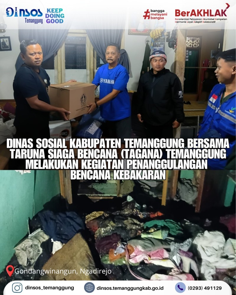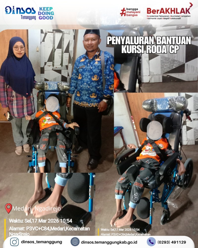 Berita Kategori: Smart Government (Pemerintah Cerdas) Bidang Perlindungan dan Jaminan Sosial Jumat, 27/03/2026 14:37 1 Dinas Sosial Kabupaten Temanggung bersama Taruna Siaga Bencana (TAGANA) Temanggung melakukan kegiatan penanggulangan bencana angin ribut Selengkapnya Kategori: Smart Government (Pemerintah Cerdas) Sekretariat Jumat, 27/03/2026 14:07 1 Dinas Sosial mengadakan rapat koordinasi terkait persiapan launching Rumah Terapi Kabupaten Temanggung Selengkapnya Kategori: Smart Government (Pemerintah Cerdas) Sekretariat Jumat, 27/03/2026 13:55 1 Dinas Sosial Kabupaten Temanggung mengikuti Musrenbang RKPD Kabupaten Temanggung Tahun 2027 Selengkapnya Kategori: Smart Government (Pemerintah Cerdas) Bidang Perlindungan dan Jaminan Sosial Jumat, 27/03/2026 09:19 2 Dinas Sosial Kabupaten Temanggung bersama Taruna Siaga Bencana (TAGANA) Temanggung melakukan kegiatan penanggulangan bencana tanah longsor Selengkapnya Kategori: Smart Government (Pemerintah Cerdas) Sekretariat Rabu, 25/03/2026 12:59 2 Halalbihalal Dinas Sosial Kabupaten Temanggung Selengkapnya Kategori: Smart Government (Pemerintah Cerdas) Sekretariat Rabu, 25/03/2026 11:42 2 Dinas Sosial mengadakan Halal Bi Halal Selengkapnya Kategori: Smart Government (Pemerintah Cerdas) Bidang Perlindungan dan Jaminan Sosial Rabu, 25/03/2026 11:26 1 Dinas Sosial Kabupaten Temanggung bersama Taruna Siaga Bencana (TAGANA) Temanggung melakukan kegiatan penanggulangan bencana kebakaran Selengkapnya Kategori: Smart Government (Pemerintah Cerdas) Sekretariat Rabu, 25/03/2026 10:35 2 Kepala Dinas Sosial Kabupaten Temanggung memimpin apel pagi ASN Dinsos Selengkapnya Kategori: Smart Government (Pemerintah Cerdas) Bidang Perlindungan dan Jaminan Sosial Rabu, 25/03/2026 08:34 1 Dinas Sosial Kabupaten Temanggung bersama Taruna Siaga Bencana (TAGANA) Temanggung melakukan kegiatan penanggulangan bencana kebakaran Selengkapnya Kategori: Smart Government (Pemerintah Cerdas) Bidang Perlindungan dan Jaminan Sosial Rabu, 25/03/2026 08:16 1 Dinas Sosial Kabupaten Temanggung bersama Taruna Siaga Bencana (TAGANA) Temanggung melakukan kegiatan penanggulangan bencana kebakaran Selengkapnya Kategori: Smart Government (Pemerintah Cerdas) Bidang Rehabilitasi Sosial Selasa, 17/03/2026 14:55 1 Dinas Sosial menyalurkan bantuan Kursi Roda CP bagi klien di Desa Medari Kecamatan Ngadirejo Selengkapnya Kategori: Smart Government (Pemerintah Cerdas) Bidang Perlindungan dan Jaminan Sosial Selasa, 17/03/2026 12:29 2 Dinas Sosial Kabupaten Temanggung bersama Taruna Siaga Bencana (TAGANA) Temanggung melakukan kegiatan penanggulangan bencana tanah longsor Selengkapnya FirstPrev678910NextLast