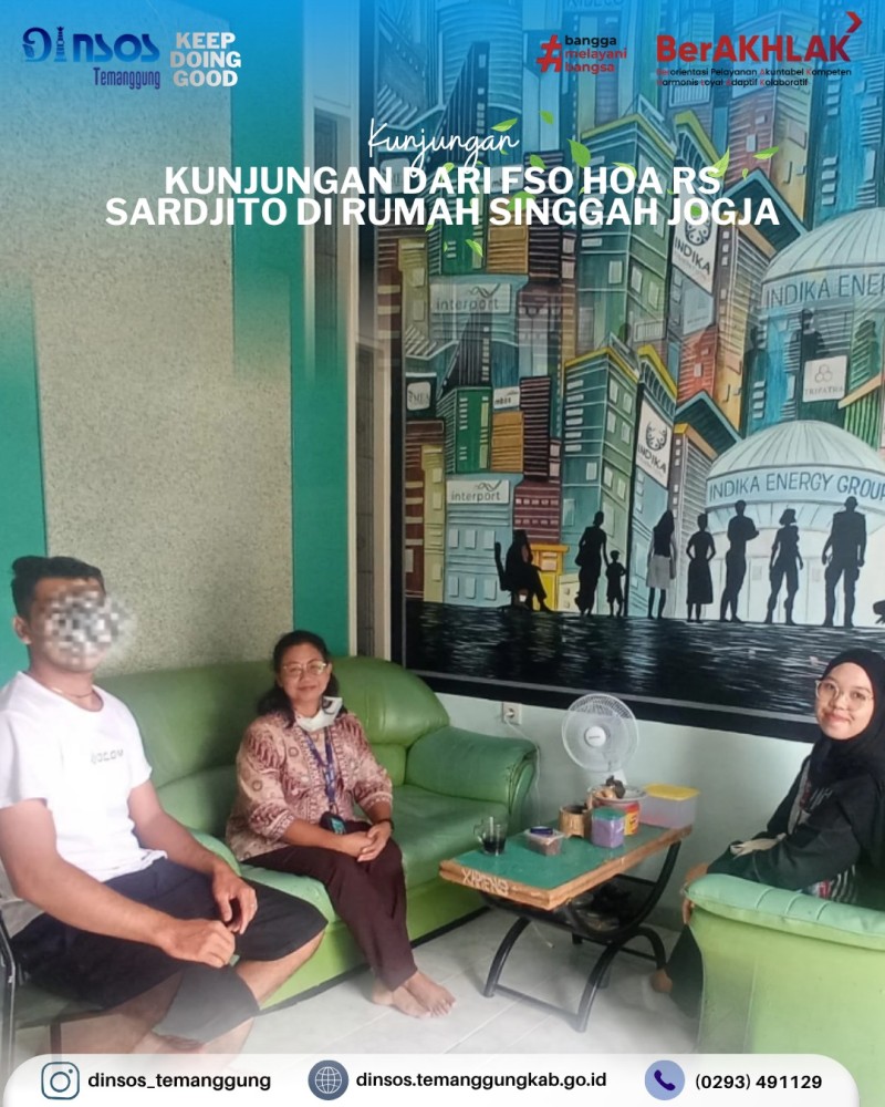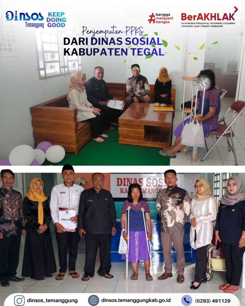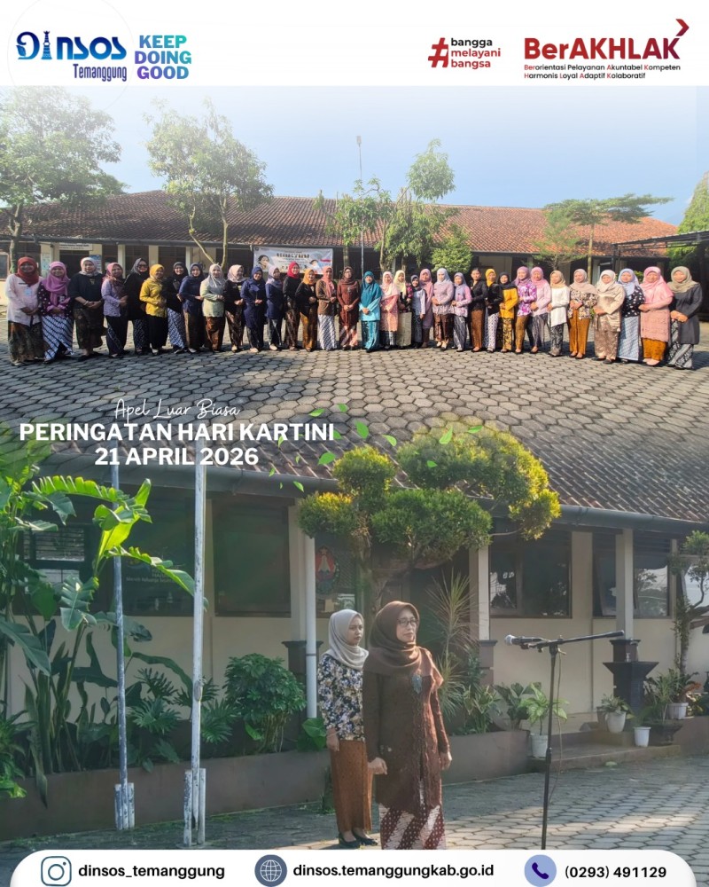 Kategori Smart Government (Pemerintah Cerdas) Kategori: Smart Government (Pemerintah Cerdas) Bidang Rehabilitasi Sosial 21 April 2026 14:54:00 0 Kunjungan dari FSO HOA RS Sardjito di Rumah Singgah Temanggung di Yogyakarta Selengkapnya Kategori: Smart Government (Pemerintah Cerdas) UPT 21 April 2026 14:50:00 1 UPTD Rumah Singgah menerima kunjungan dari Dinas Sosial Kota Tegal dalam rangka penjemputan PPKS terlantar di Temanggung Selengkapnya Kategori: Smart Government (Pemerintah Cerdas) Sekretariat 21 April 2026 13:58:00 1 Dinas Sosial mengikuti Rapat Koordinasi Pariwara Antikorupsi di Graha Bumi Phala Selengkapnya Kategori: Smart Government (Pemerintah Cerdas) Sekretariat 21 April 2026 11:11:00 1 Apel Luar Biasa Peringatan Hari Kartini 21 April 2026 Dinas Sosial Selengkapnya Kategori: Smart Government (Pemerintah Cerdas) Sekretariat 20 April 2026 16:08:00 2 Dinas Sosial mengikuti desk dan monev UCJ BPJSTK oleh Biro Bangda Kemendagri Selengkapnya Kategori: Smart Government (Pemerintah Cerdas) Bidang Rehabilitasi Sosial 20 April 2026 16:05:00 1 Kegiatan monitoring di rumah singgah Yogyakarta Selengkapnya Kategori: Smart Government (Pemerintah Cerdas) Sekretariat 20 April 2026 14:11:00 1 Monev Penyaluran Bantuan Pangan oleh Kepala Dinas Sosial di Kecamatan Bulu Selengkapnya Kategori: Smart Government (Pemerintah Cerdas) Sekretariat 20 April 2026 11:41:00 3 Terimakasih Kepada Pak Chairul atas segala dedikasinya selama berada di Dinas Sosial Selengkapnya Kategori: Smart Government (Pemerintah Cerdas) Sekretariat 20 April 2026 11:36:00 0 Apel pagi Dinas Sosial Kabupaten Temanggung Selengkapnya Kategori: Smart Government (Pemerintah Cerdas) Sekretariat 20 April 2026 11:32:00 1 Dinas Sosial mengantar tugas Ananda Riski ke BKPSDM Selengkapnya Kategori: Smart Government (Pemerintah Cerdas) Sekretariat 20 April 2026 11:24:00 0 Rapat Koordinasi Rutin Dinas Sosial Kabupaten Temanggung Selengkapnya Kategori: Smart Government (Pemerintah Cerdas) Sekretariat 20 April 2026 11:22:00 0 Layanan SLRT Dinas Sosial Selengkapnya 123NextLast