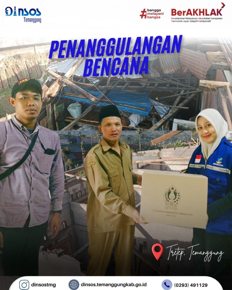 Kategori Lainnya Kategori: Lainnya Bidang Perlindungan dan Jaminan Sosial 24 Januari 2026 14:00:00 1 Penanggulangan Bencana Angin Ribut yang Terjadi di Desa Candisari Kecamatan Tlogomulyo Selengkapnya Kategori: Lainnya Sekretariat 24 Januari 2026 12:54:00 1 Penanggulangan Bencana Angin Ribut yang Terjadi di Desa Bonjor Kecamatan Tretep Selengkapnya 123NextLast