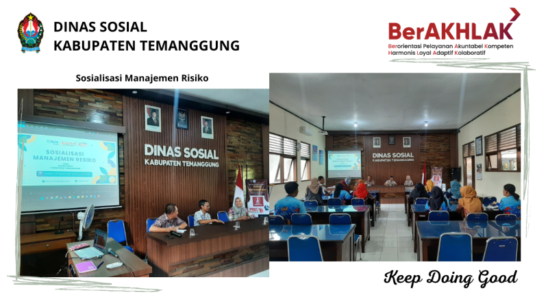 Dinas Sosial Kabupaten Temanggung, pada hari Selasa, 25 November 2025 bertempat di aula Dinas Sosial mengadakan sosialisasi manajemen risiko dengan narasumber dari Inspektorat Kabupaten Temanggung yaitu: