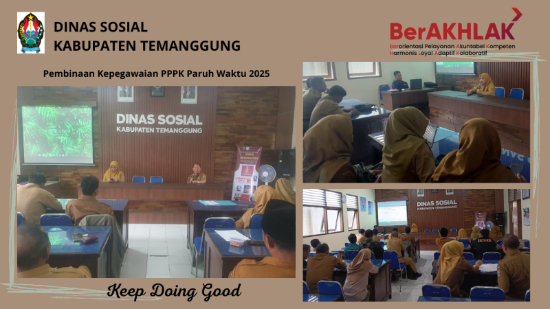 Dinas Sosial, Senin 15 Desember 2025 mengadakan kegiatan pembinaan PPPK Paruh Waktu 2025 sebanyak 22 orang yang diisi oleh Sekretaris DInas dan Kasubag Umum dan Kepegawaian.