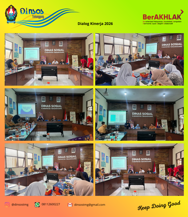 Selasa, 13 Januari 2026 Dinas Sosial mengadakan Dialog Kinerja Tahun 2026 yang membahas dan mengisi MPH (Matrik Peran Hasil). Kegiatan ini dipimpin oleh Kepala Dinas Sosial Kabupaten Temanggung Bapak Heri Kardono, S.STP.