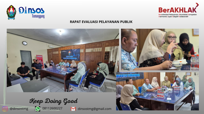 Pada Hari Jumat, 23 Januari 2025 pukul 8.00 WIB Dinas Sosial mengadakan Rapat Internal terkait Evaluasi Pelayanan Publik, Rapat dipimpin Oleh Sekertaris Dinas Sosial, dan di hadiri oleh Kasubbag Umum dan Kepegawaian, Kepala UPTD Rumah Singgah serta perwakilan petugas pelayanan dari Bidang Rehabsos, Dayasos, Linjamsos, dan Sekertariat. Dalam Rapat ini membahas optimalisasi penyediaan layanan informasi publik terkait layanan yang terdapat di Dinas Sosial dan perbaikan dari setiap informasi yang diunggah dan disediakan di media sosial maupun secara langsung.
